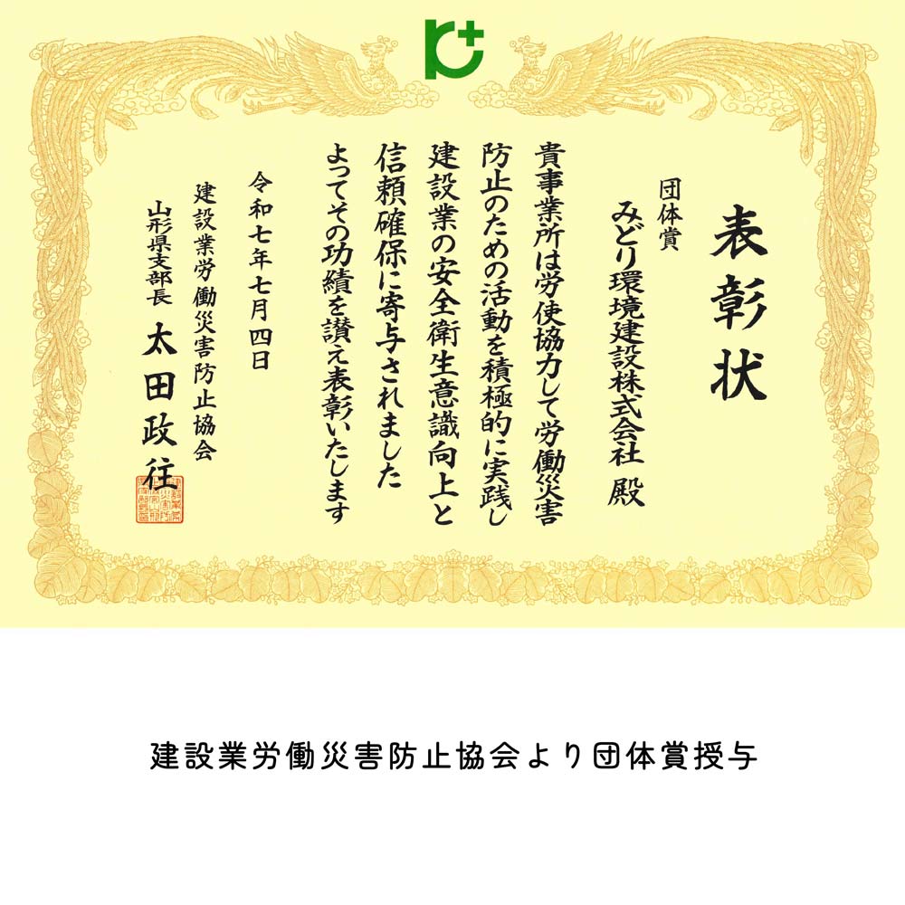 | みどり環境建設株式会社は 「やまがた健康企業宣言」登録事業所です。 「山形県産業安全衛生大会」において 優良賞を授与されました。 |